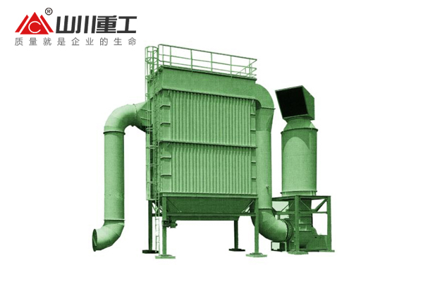 除塵器主要由上箱體、中箱體、灰斗、進風均流管、支架濾袋及噴吹裝置、卸灰裝置等組成。含塵氣體從除塵器的進風均流管進入各分室灰斗,并在灰斗導流裝置的導流下,大顆粒的粉塵被分離,直接落入灰斗,而較細粉塵均勻地進入中部箱體而吸附在濾袋的外表面上,干凈氣體透過濾袋進入上箱體,并經各離線閥和排風管排入大氣。隨著過濾工況的進行,濾袋上的粉塵越積越多,當設備阻力達到限定的阻力值(一般設定為1500Pa )時,由清灰控制裝置按差壓設定值或清灰時間設定值自動關閉一室離線閥后,按設定程序打開電控脈沖閥,進行停風噴吹,利用壓縮空氣瞬間噴吹使濾袋內壓力聚增,將濾袋上的粉塵進行抖落(即使粘細粉塵亦能較徹底地清灰)至灰斗中,由排灰機構排出。