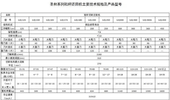 1JQ系列秸稈粉碎還田機,是我公司新研發(fā)的一款機型。它是為了適應拖拉機動力不斷提高、適應農民對作業(yè)效率的提高而開發(fā)的。本機最主要的特點是:a.加大了變速箱齒輪的模數,提高了變速箱的速比。b.加強了機身整體的強度,殼體內增加了過度襯板,減慢了殼體內粘土的速度。c.采用新工藝,提高了還田機刀具的使用壽命。d.機殼采用了后蓋開合機構,方便了用戶清理機殼,方便了刀具的更換與檢修。本機主要技術參數如下表:
