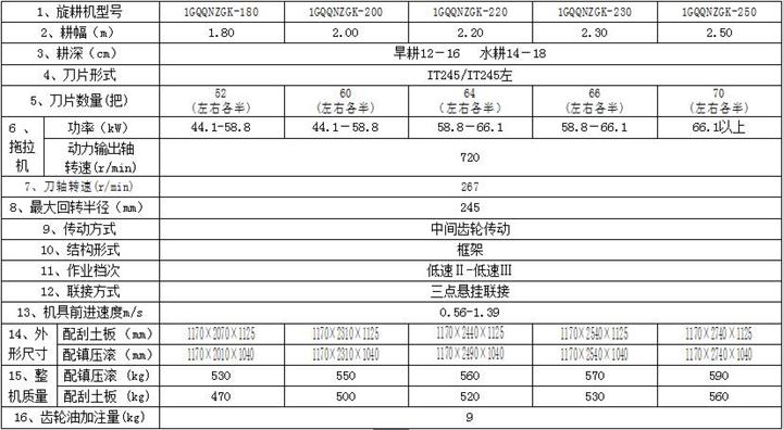 型    號:1GQQNZGK-230型旋耕機