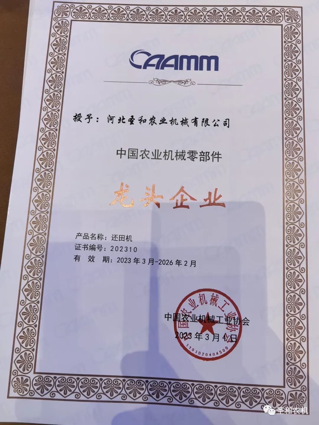 秉初心筑基蓄力 賦新能穩(wěn)健前行-----熱烈祝賀圣和公司榮獲“中國農(nóng)業(yè)機械零部件龍頭企業(yè)”榮譽稱號