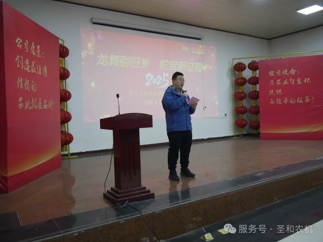 2025年1月24日,河北圣和農(nóng)業(yè)機械有限公司在公司培訓大廳,隆重舉辦了以“龍舞別舊歲,蛇啟新征程”為主題的2025年迎春茶話會。此次茶話會旨在總結過去一年的工作成績,展望新一年的發(fā)展目標,同時增進員工之間的交流與友誼,營造和諧融洽的企業(yè)文化氛圍。