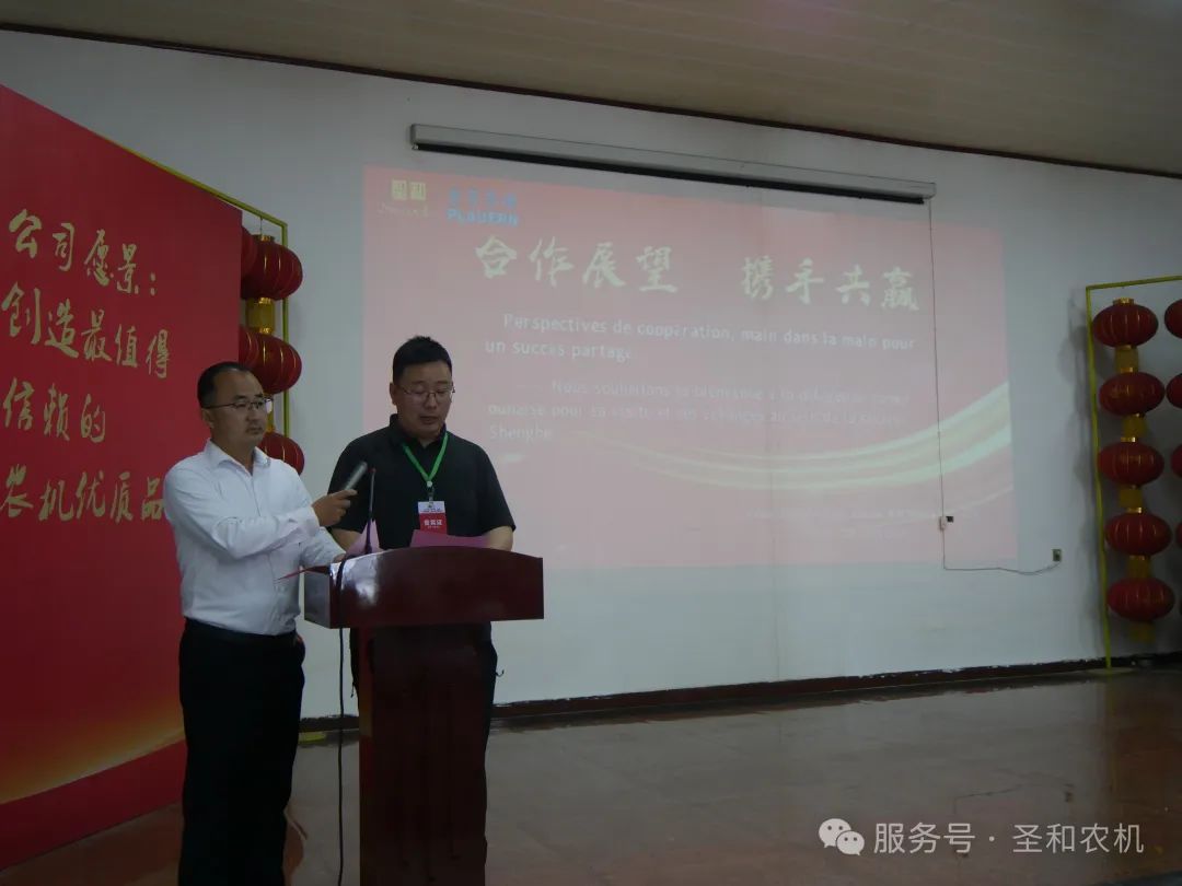 在座談會上,圣和公司副總經(jīng)理王帥致歡迎詞。王帥副總經(jīng)理首先代表圣和公司全體員工,向代表團各位成員的到來表示最熱烈的歡迎和最誠摯的問候!王帥指出:今天,各位貴賓的到來,為我們帶來了不同的視角和豐富的經(jīng)驗。我們非常珍惜這次與大家深入交流的機會,希望能在技術(shù)創(chuàng)新、市場拓展、產(chǎn)業(yè)合作等方面與各位展開廣泛而深入的探討。”王帥同時強調(diào)“相信通過我們的共同努力,能夠?qū)崿F(xiàn)優(yōu)勢互補、資源共享,為推動農(nóng)業(yè)機械行業(yè)的發(fā)展貢獻力量。