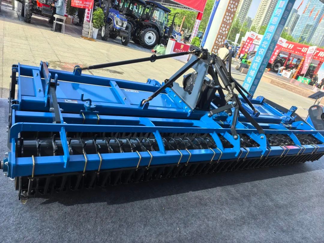 明星產(chǎn)品閃耀全場。在本次展會上,兩家企業(yè)帶來了一系列先進的農(nóng)業(yè)機械設(shè)備。其中包括230A加高箱翻蓋還田機,其獨特的加高箱翻蓋設(shè)計,不僅方便了清理工作,還提高了作業(yè)效率;300型雙傳翻蓋還田機,雙傳動系統(tǒng)使得動力傳輸更加穩(wěn)定,作業(yè)效果更加出色;450型配新式鎮(zhèn)壓輥特大高箱旋耕機,配備的新式鎮(zhèn)壓輥能在旋耕后對土壤進行有效鎮(zhèn)壓,使土地平整度和保墑效果更佳,滿足大規(guī)模農(nóng)田的高標準耕作需求;1CMJ - 200E型殘膜回收與秸稈粉碎還田聯(lián)合作業(yè)機,集殘膜回收與秸稈粉碎還田功能于一體,有效解決了農(nóng)田殘膜污染和秸稈處理難題,符合綠色農(nóng)業(yè)發(fā)展的要求,被譽為"白色污染治理利器" 。