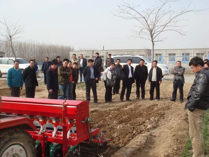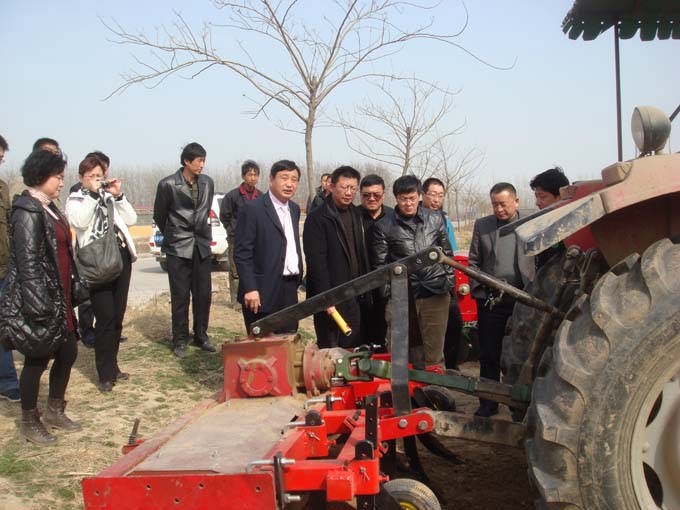 3月23日在河北省農(nóng)機推廣站孫東法站長的陪同下,上海市農(nóng)機推廣總站夏海榮站長、上海市農(nóng)機推廣站甘俊彥科長、王學(xué)云科長一行來我公司參觀深松機項目,隨行來的還有上海各區(qū)縣負(fù)責(zé)農(nóng)機推廣的領(lǐng)導(dǎo)。一行人參觀了公司產(chǎn)品展廳后來到公司機具實驗基地,現(xiàn)場觀看了公司深松機、旋播機的演示作業(yè),期間公司王新芳董事長向各位領(lǐng)導(dǎo)詳細(xì)講解了深松機的應(yīng)用原理、作業(yè)效果以及適用范圍,各位領(lǐng)導(dǎo)對此次現(xiàn)場演示作業(yè)做出了很高評價,對公司產(chǎn)品也抱有很高期望。