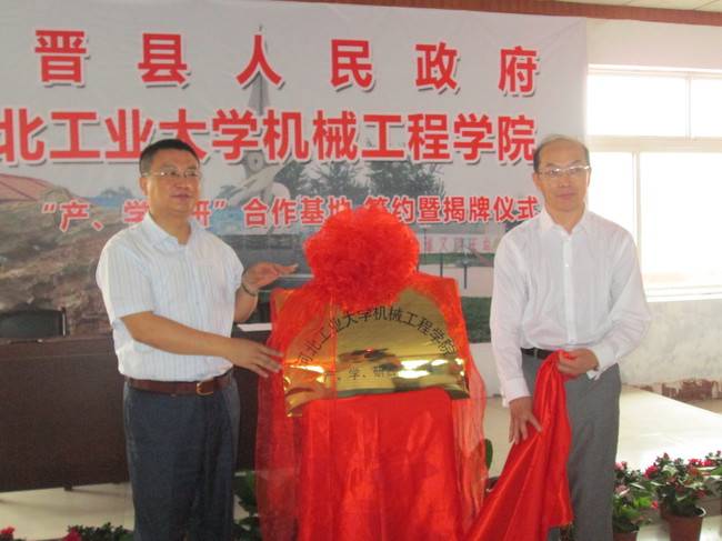 2013年6月8日,河北工業(yè)大學(xué)機(jī)械工程學(xué)院產(chǎn)、學(xué)、研合作基地簽約暨揭牌儀式, 學(xué)院黨委書記張成德、戴士杰副院長、副縣長攸超、縣工信局白志芬局長、大陸村鎮(zhèn)黨委書計蔡侗江、鎮(zhèn)長宋瑞剛一同出席了揭牌儀式.