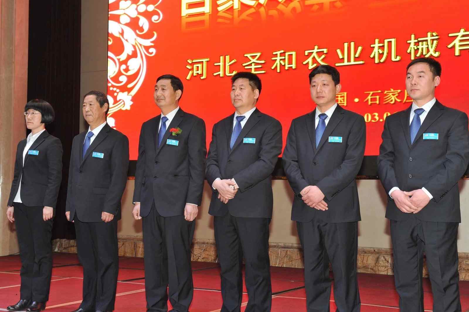 中國農業(yè)機械化協(xié)會常務副會長馬世青,中國農業(yè)機械流通協(xié)會副會長陳濤,農業(yè)部農業(yè)機械化技術開發(fā)推廣總站推廣一處處長徐振興,河北省農業(yè)機械化管理局副局長田繼來、河北省農業(yè)機械鑒定站站長史建新、寧晉縣人民政府縣長李小平等領導,河北圣和董事長王新芳、總經理師西峰、常務副總蘇山嶺、營銷部副總馮立全、研發(fā)部副總徐秀霞、生產部副總張同斌等公司領導以及來自全國各地的經銷商800余人參加了本次盛會。