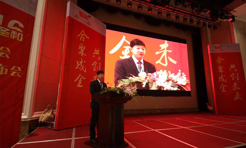 圣和常務副總蘇山嶺,營銷副總馮立全、副總徐秀霞等分別介紹了公司的戰(zhàn)略發(fā)展規(guī)劃、新產品特點與2016年銷售優(yōu)惠政策,會上還對優(yōu)秀經銷商進行了表彰。