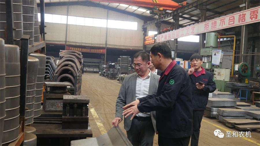 在參觀考察期間,胡縣長一行與王總,就全國各地農(nóng)機化農(nóng)藝等現(xiàn)狀,特別是新疆區(qū)域的農(nóng)業(yè)機械化與智慧化進行了深入交流;領導詳細咨詢了圣和公司的生產(chǎn)經(jīng)營情況,對公司的生產(chǎn)管理與產(chǎn)品工藝給予了高度肯定,表達了致力于加快實現(xiàn)農(nóng)業(yè)機械化,解放農(nóng)民勞動力的愿望。