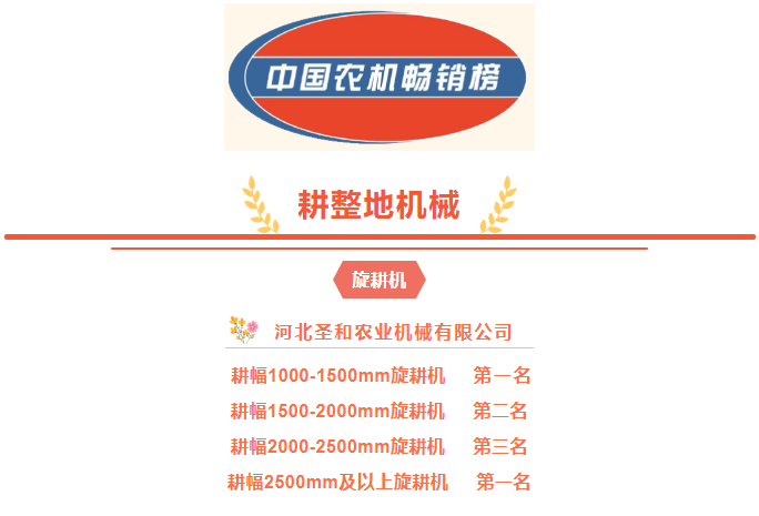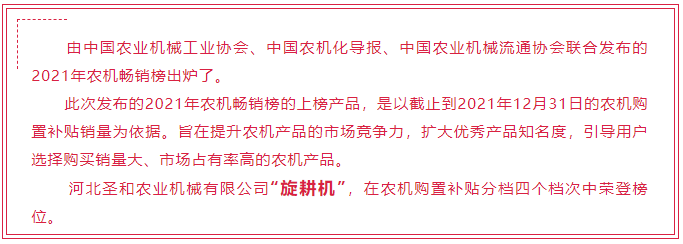 2021年中國農機暢銷榜發(fā)布——圣和旋耕機榮登榜位