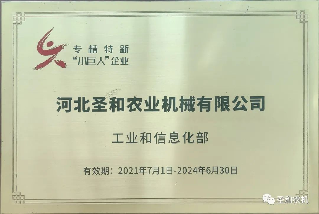 2022年,河北省工業(yè)和信息化廳,公布了河北省首批縣域特色產(chǎn)業(yè)集群“領(lǐng)跑者”企業(yè)名單,河北圣和農(nóng)業(yè)機(jī)械有限公司入選。