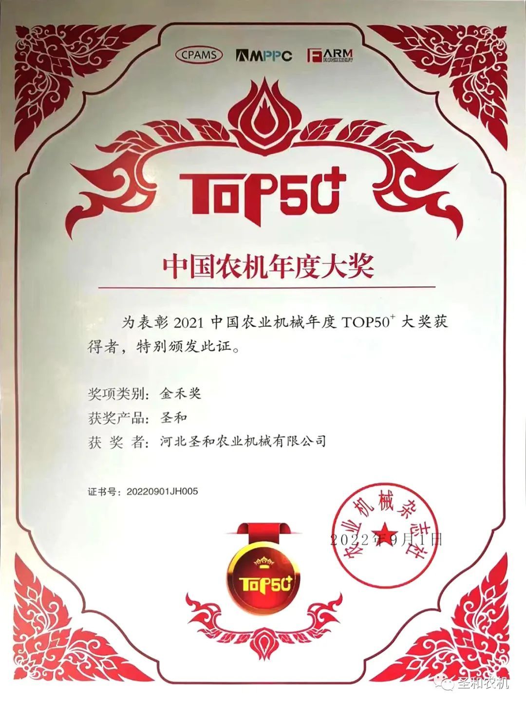 圣和品牌榮獲2020年中國農(nóng)業(yè)機(jī)械年度TOP50+最具影響力自主品牌金禾獎。第二個五年規(guī)劃正在實(shí)施中,隨著中國市場的不斷優(yōu)化,圣和農(nóng)機(jī)多年潛心鉆研而成的優(yōu)勢逐漸顯現(xiàn)。由于良好的產(chǎn)品質(zhì)量和營銷服務(wù),公司的產(chǎn)品贏得全國各地用戶的普遍認(rèn)可,有多款產(chǎn)品的銷售量排名在全國的前列。