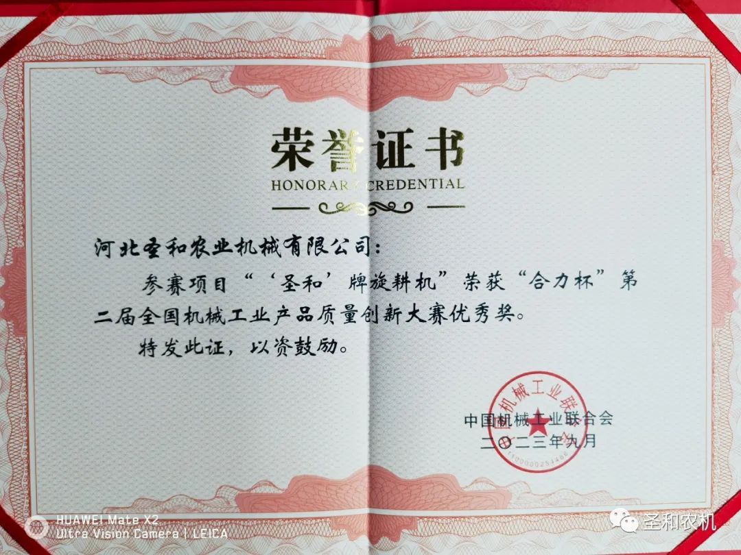實力領(lǐng)跑,再獲殊榮——圣和牌旋耕機項目斬獲全國機械工業(yè)產(chǎn)品質(zhì)量創(chuàng)新大賽優(yōu)秀獎